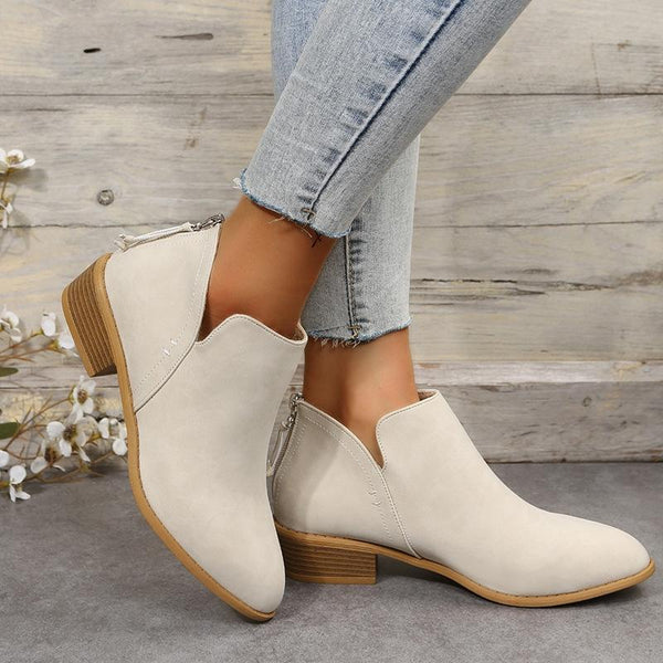 Autumn And Winter Pointed Low-Heeled Boots Women Low Tube Boots, Shoe Size:42(Beige)