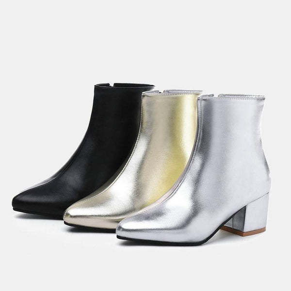 AutumnWinter Glitter Square Heel Pointed Low-Top Women Boots, Size:34(Silver)