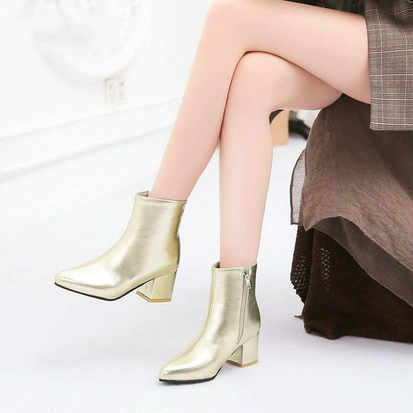 AutumnWinter Glitter Square Heel Pointed Low-Top Women Boots, Size:37(Gold)