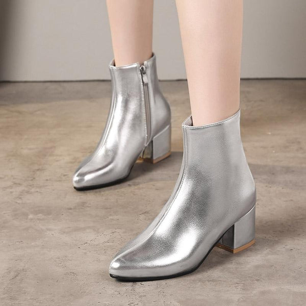 AutumnWinter Glitter Square Heel Pointed Low-Top Women Boots, Size:39(Silver)