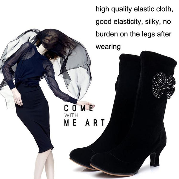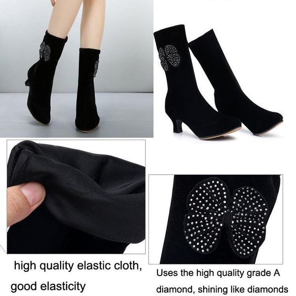 Autumn/Winter Latin Dance Shoes With Soft Velvet-Soled Mid-Heel Ankle Boots, Size: 38(Black)