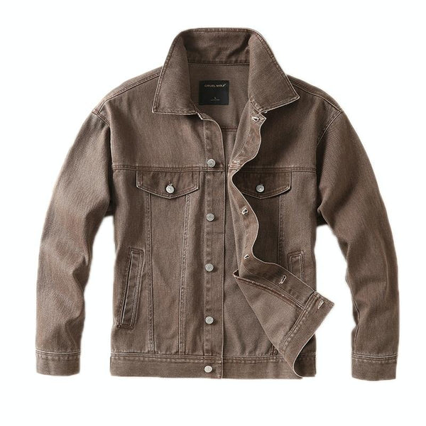 Autumn Winter Retro Denim Jacket Loose Work Jacket, Size: XXL(Coffee)