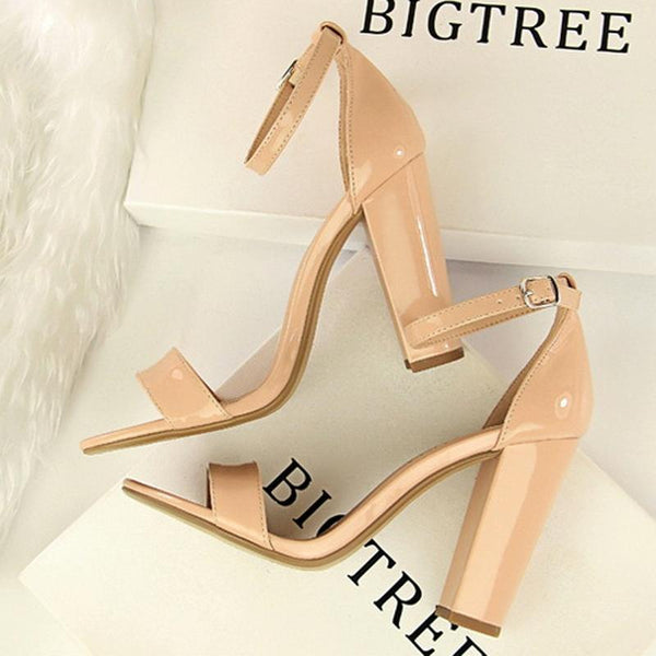BIGTREE Women Shoes Summer High Heels Simple Chunky Sexy Nightclub Ankle Strap Sandals, Size: 37(Black)