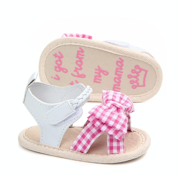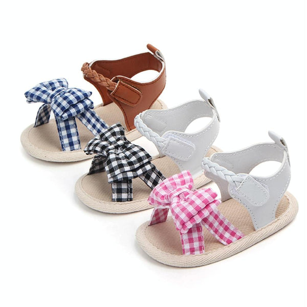 Bow Plaid Soft Weave Crib Anti-Slip Baby Girls Summer Shoes Anti-Slip Single Sandals, Size:13(Black & White)