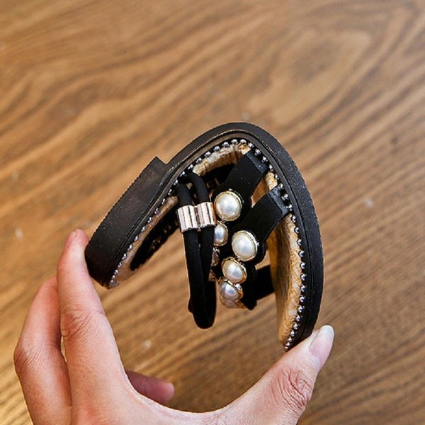 Children Pearl Baby Shoes Girls Shoes Two Wearing A Word Slippers, Size:32(Green)