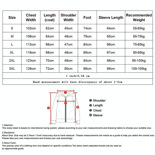 Size Chest Foot Coat Length Sleeve Length Shoulder Length