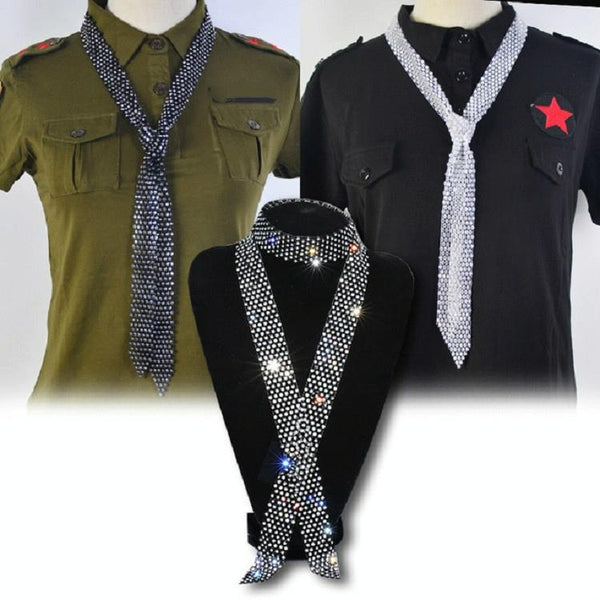 Colorful Diamond on White Women Sequined Rhinestone Bow Tie Dance Costume Accessories