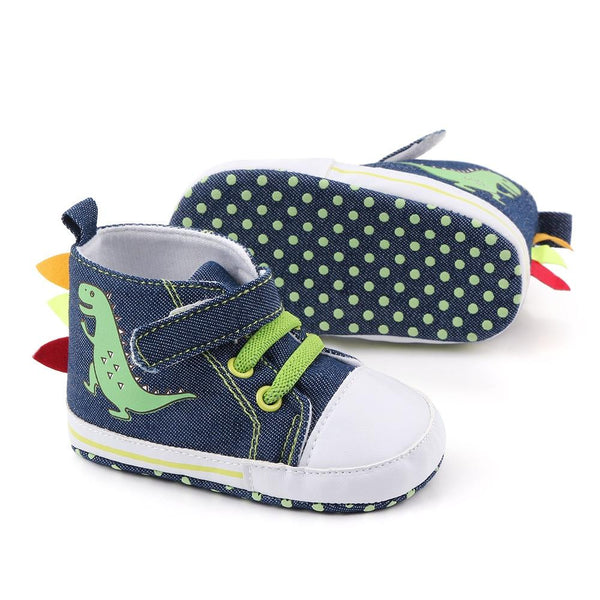D2399 High Top Canvas Cartoon Dinosaur Small Wave Shoes Cloth Soles Walking Shoes, Size: 11cm(Denim Blue)