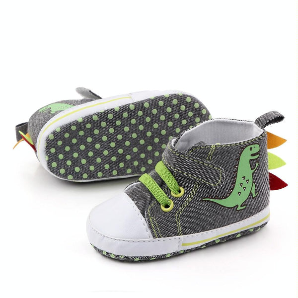 D2399 High Top Canvas Cartoon Dinosaur Small Wave Shoes Cloth Soles Walking Shoes, Size: 12cm(Grey)