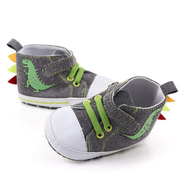 D2399 High Top Canvas Cartoon Dinosaur Small Wave Shoes Cloth Soles Walking Shoes, Size: 13cm(Grey)