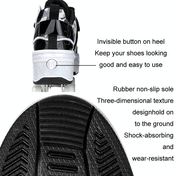DF03 Children Walking Shoes Four-wheel Retractable Roller Skates, Size:34(Mesh White Black)