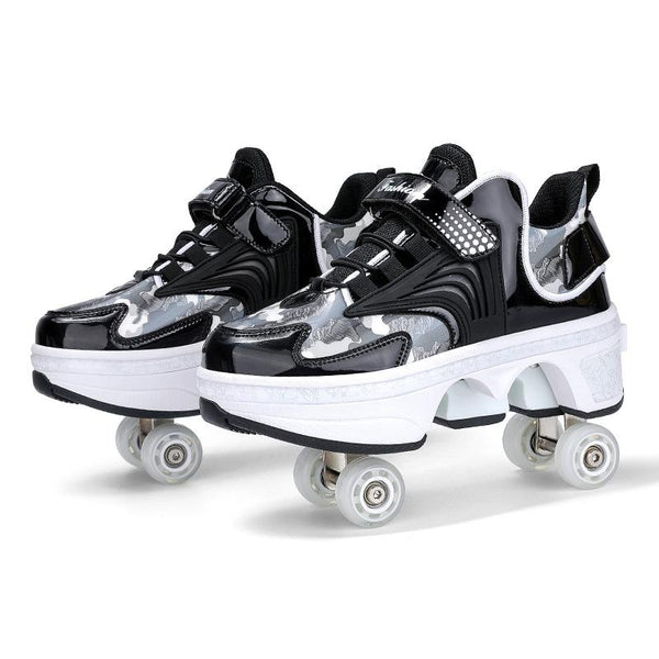 DF03 Children Walking Shoes Four-wheel Retractable Roller Skates, Size:39(Leather Black)