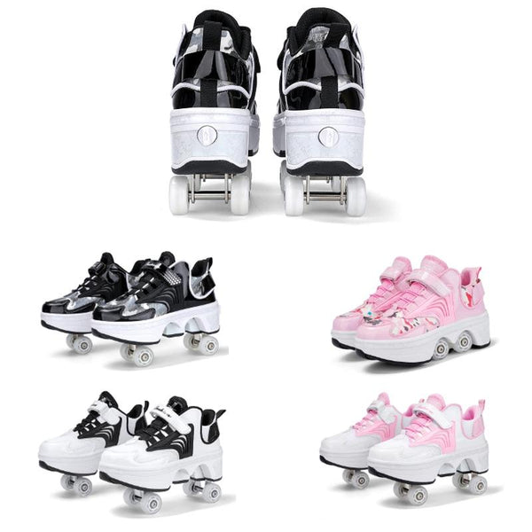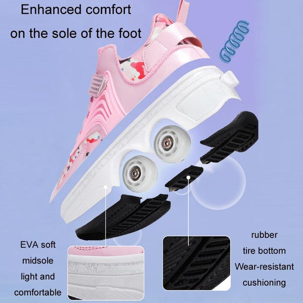 DF03 Children Walking Shoes Four-wheel Retractable Roller Skates, Size:40(Mesh White Black)