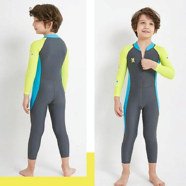 DIVE&SAIL Children Diving Suit Outdoor Long-sleeved One-piece Swimsuit Sunscreen Swimwear, Size: L(Boys Dark Gray)