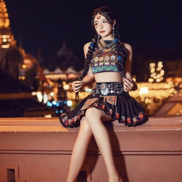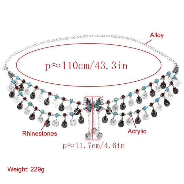 Ethnic Style Dance Performance Waist Chain Tassel Belt, Color: C