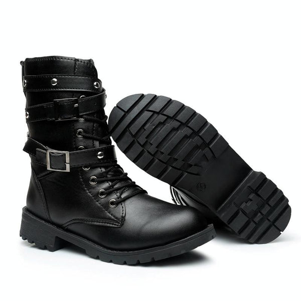 Female Martin Boots Riveted Belt Buckle Flat Bottom Boots, Size: 37(Black)