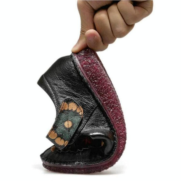 Flower Round Toe Soft Bottom Vintage Leather Flat Shoes, Szie:41(Red)