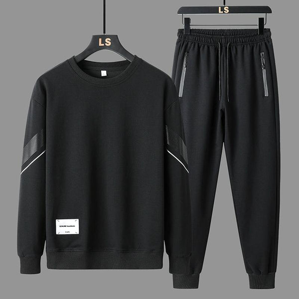 FLQS188 Spring and Autumn Round Collar Pullover Sweatshirt Set Men Casual Sports Clothes, Size: 3XL(Black)