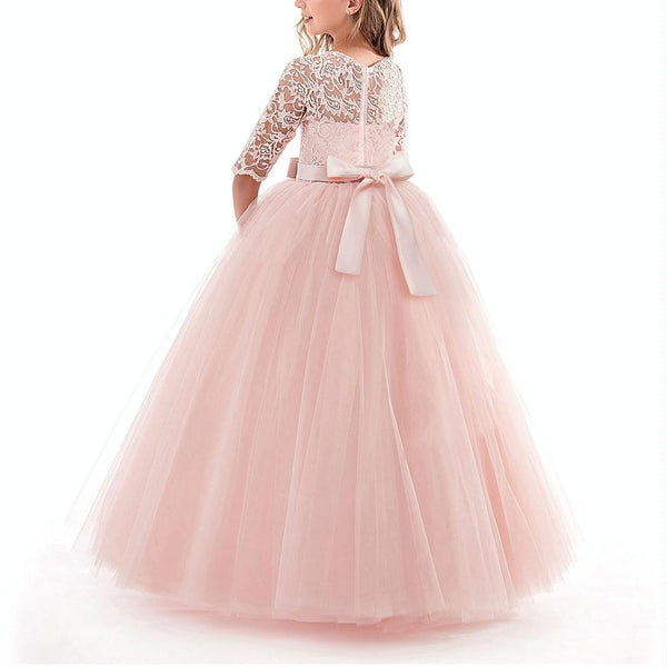 Girls Party Dress Children Clothing Bridesmaid Wedding Flower Girl Princess Dress, Height:130cm(Pink)