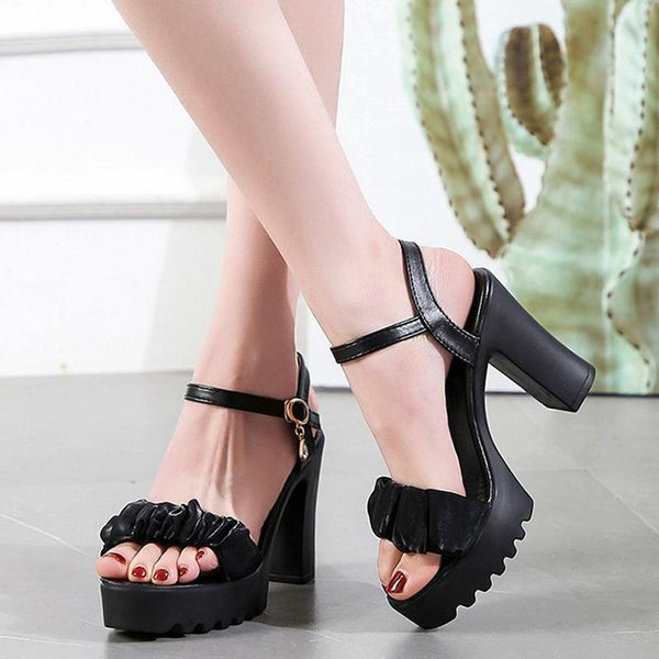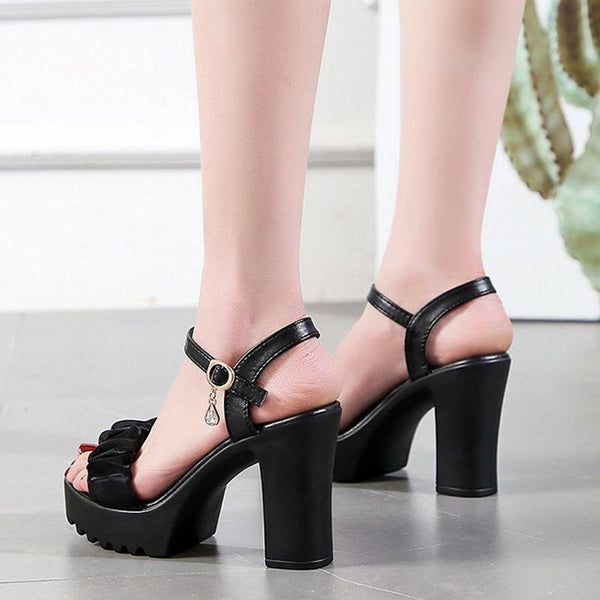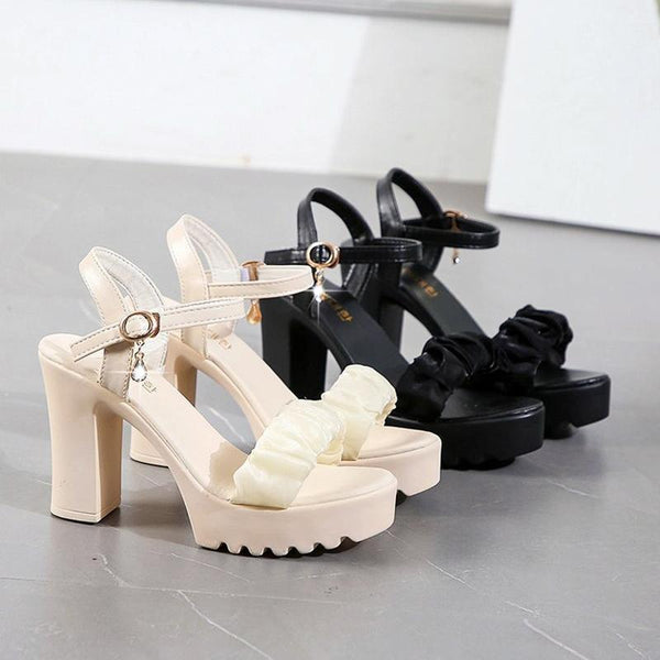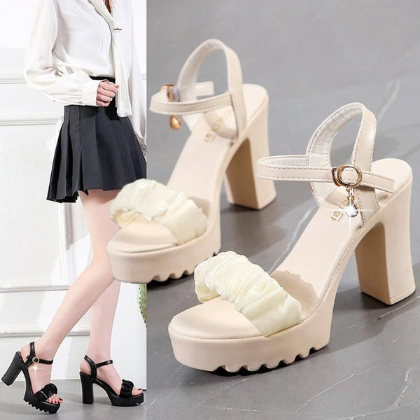 HALINFER Summer High Heel Sandals Thick Bottom Waterproof Platform Women Shoes, Size: 40(Beige)