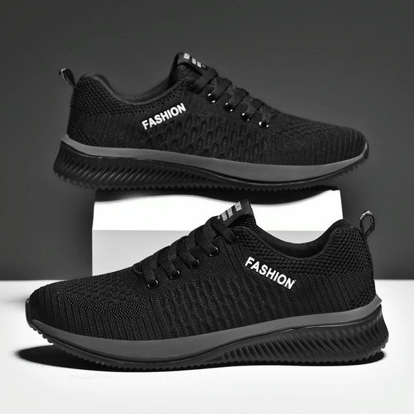 JD-9088 Autumn Fly Woven Soft Bottom Men Leisure Shoes Couple Running Shoes, Size: 41(Black Ash)