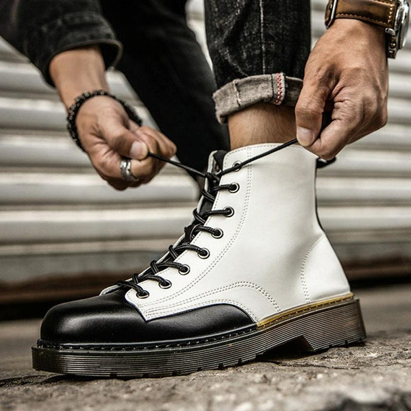 JL-MR062 Men Martin Boots High-Top Lace Biker Work Shoes, Size: 39(White)