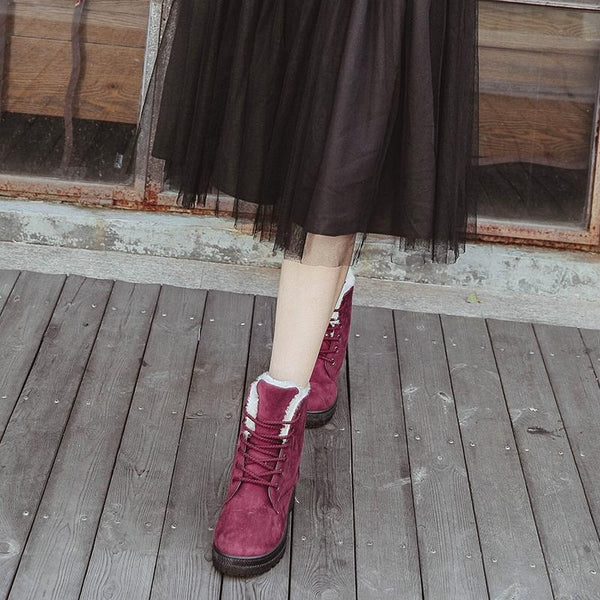 Ladies Cotton Shoes Plus Velvet Snow Boots, Size:36(Red Wine)
