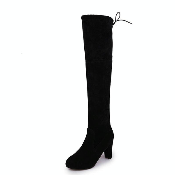 Ladies Over-the-knee Boots Frosted Leather Thick High Heel Boots, Size: 38(Wine Red)