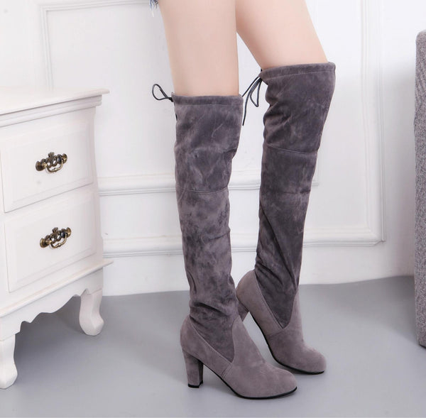 Ladies Over-the-knee Boots Frosted Leather Thick High Heel Boots, Size: 42(Gray)