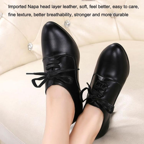 Latin Dance Shoes Women Leather Square Dance Soft Soled Medium Heels Shoes, Size: 36(Wine Red)