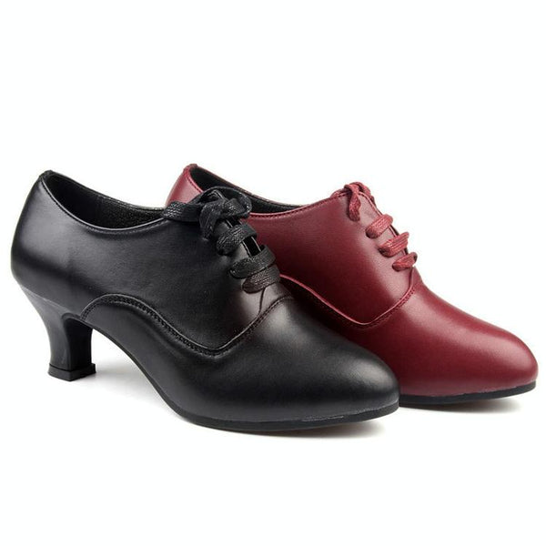 Latin Dance Shoes Women Leather Square Dance Soft Soled Medium Heels Shoes, Size: 37(Black Velvet)