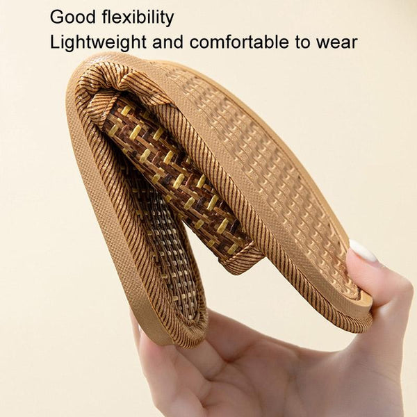 Linen Slippers Summer Couple Home Indoor Floor Rattan Grass Non-Slip Slippers, Size: 44-45(Black Grass)
