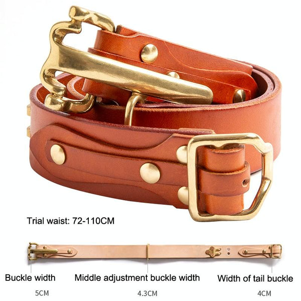 Maden 1802014 Vintage Brass Buckle Adjustable PU Belt, Length: 110cm(Dark Brown)