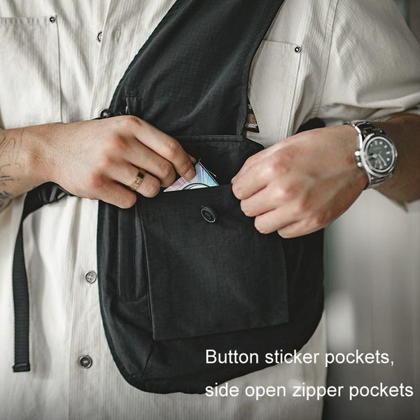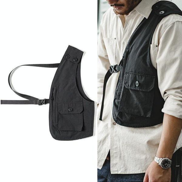 Maden TS2207636 Single Edge Adjusted And Stacked Through Sleeveless Shoulder Pocket Male Autumn Vest, Size: Free Code(Carbon Black)