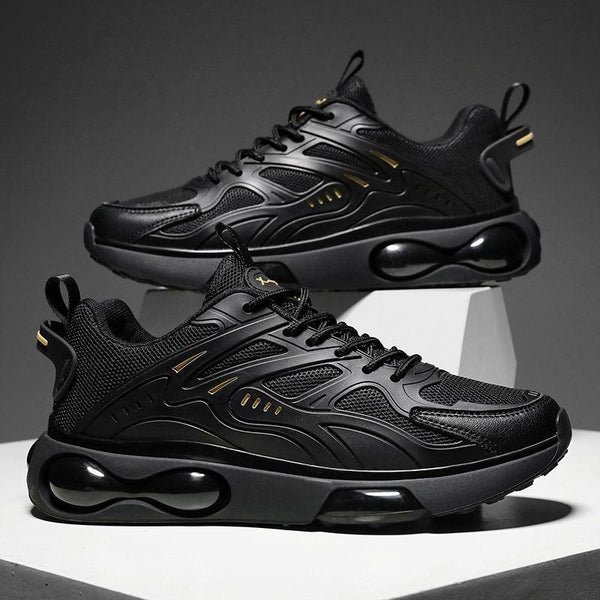 Men Air Cushion Sneakers Low Top Lace Running Shoes Mesh Breathable Sports Shoes, Size: 42(Black Gold)