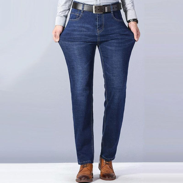 Men Business Casual Workwear Jeans Stretch Loose Straight Leg Jeans, Size: 30(Blue)