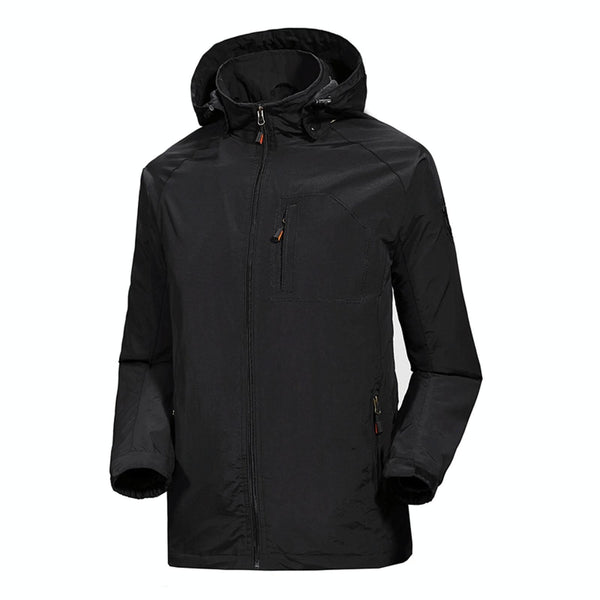 Men Casual Youth Full Zip Hooded Rainproof Jacket, Size: M(Black)