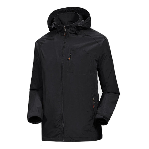 Men Casual Youth Full Zip Hooded Rainproof Jacket, Size: XXL(Black)