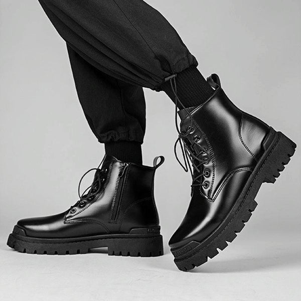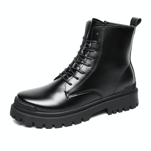 Men Martin Boots Motorcycle Leather Boots High Top Work Boots, Size: 41(BH-A008 Black)