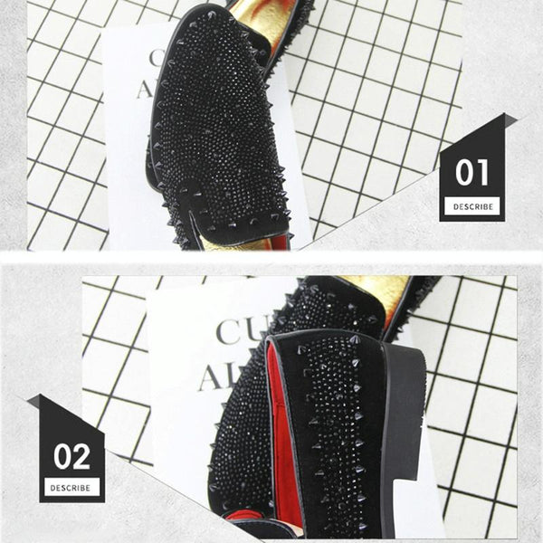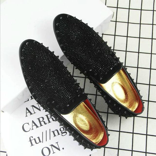 Men Rivet Rhinestone Black Pointed Toe Flats Shoes, Shoe Size:41(Black)