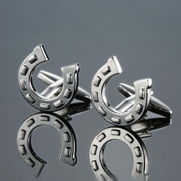 Men Shirts Enamel Lacquered Cufflinks, Color: Silver Horseshoe Iron