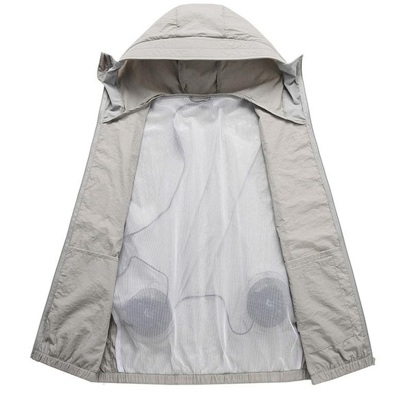 1. Designed for men, this skin-friendly jacket provides a cool sensation and effectively blocks both UVA and UVB rays, protecting against sunburn and tanning.