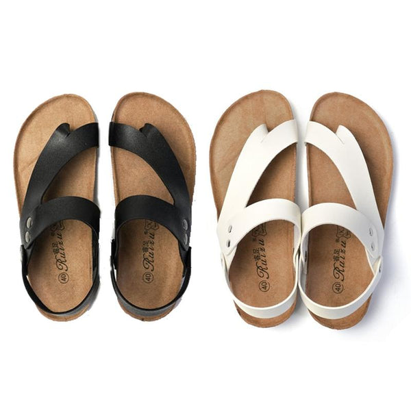 Men Summer Cork Flip Flops Beach Couple Leather Sandals, Size: 37(Black)
