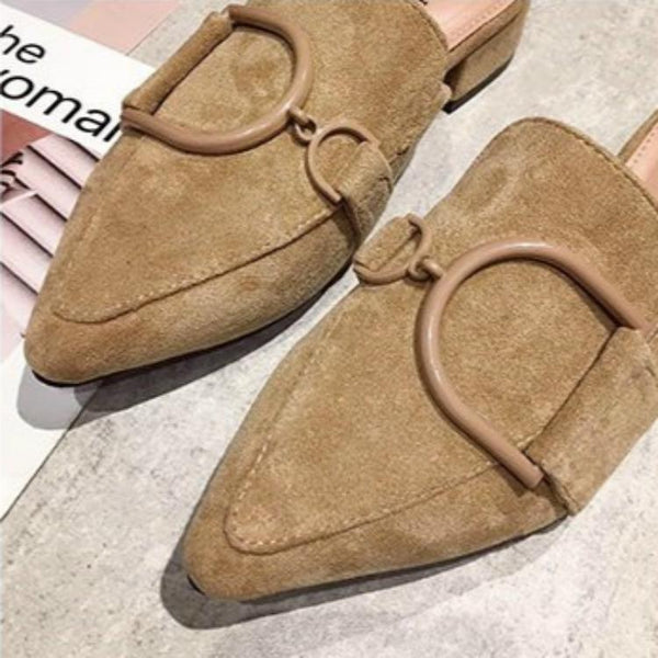 Metal Buckled Suede Pointed Slipper, Shoe Size:37(Black)