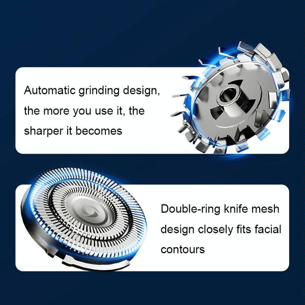 1. The double-ring blade closely fits the facial contour and makes shaving more comfortable.