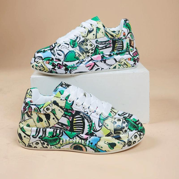 Outdoor Thick Bottom Lacing Sneakers Cartoon Graffiti Printed Couple Casual Shoes, Size: 42(Black)