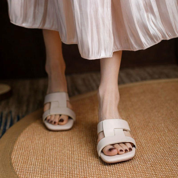 Outerwear Retro Soft Leather Chunky Heel Square Toe Open-toed Sandals, Size: 35(Beige)