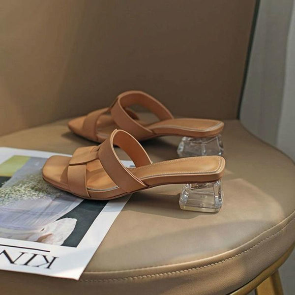 Outerwear Retro Soft Leather Chunky Heel Square Toe Open-toed Sandals, Size: 39(Apricot)