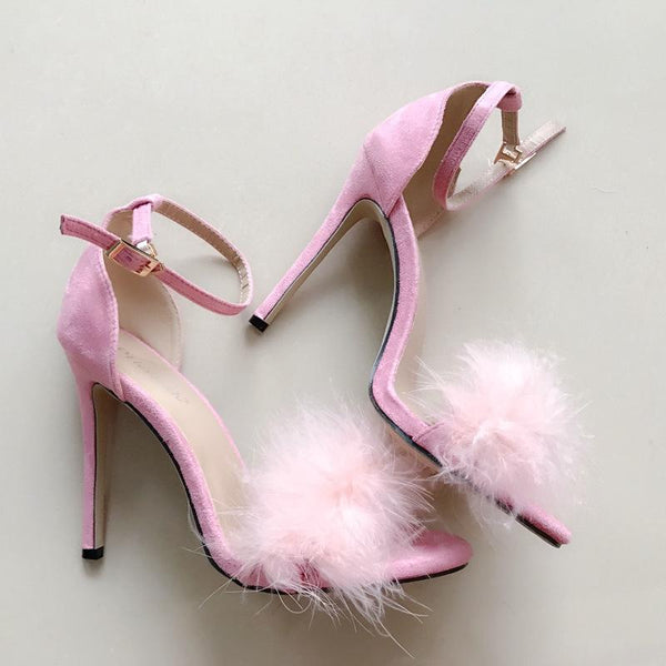 Plush Peep-Toe High Heels, Size:40(Khaki)