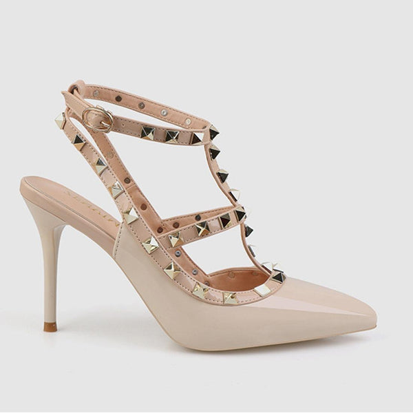 Pointed Stiletto Rivets Shallow Mouth High Heels, Shoes Size:42(Beige)
